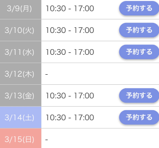 10日(火) 10:30〜17:00